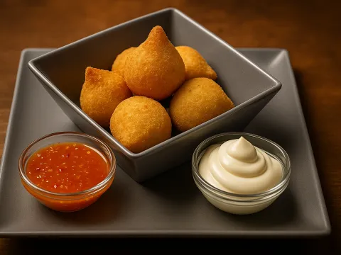 | Farcides de pollastre, amb salsa maionesa i salsa picant. Típic de brasil. | ||
